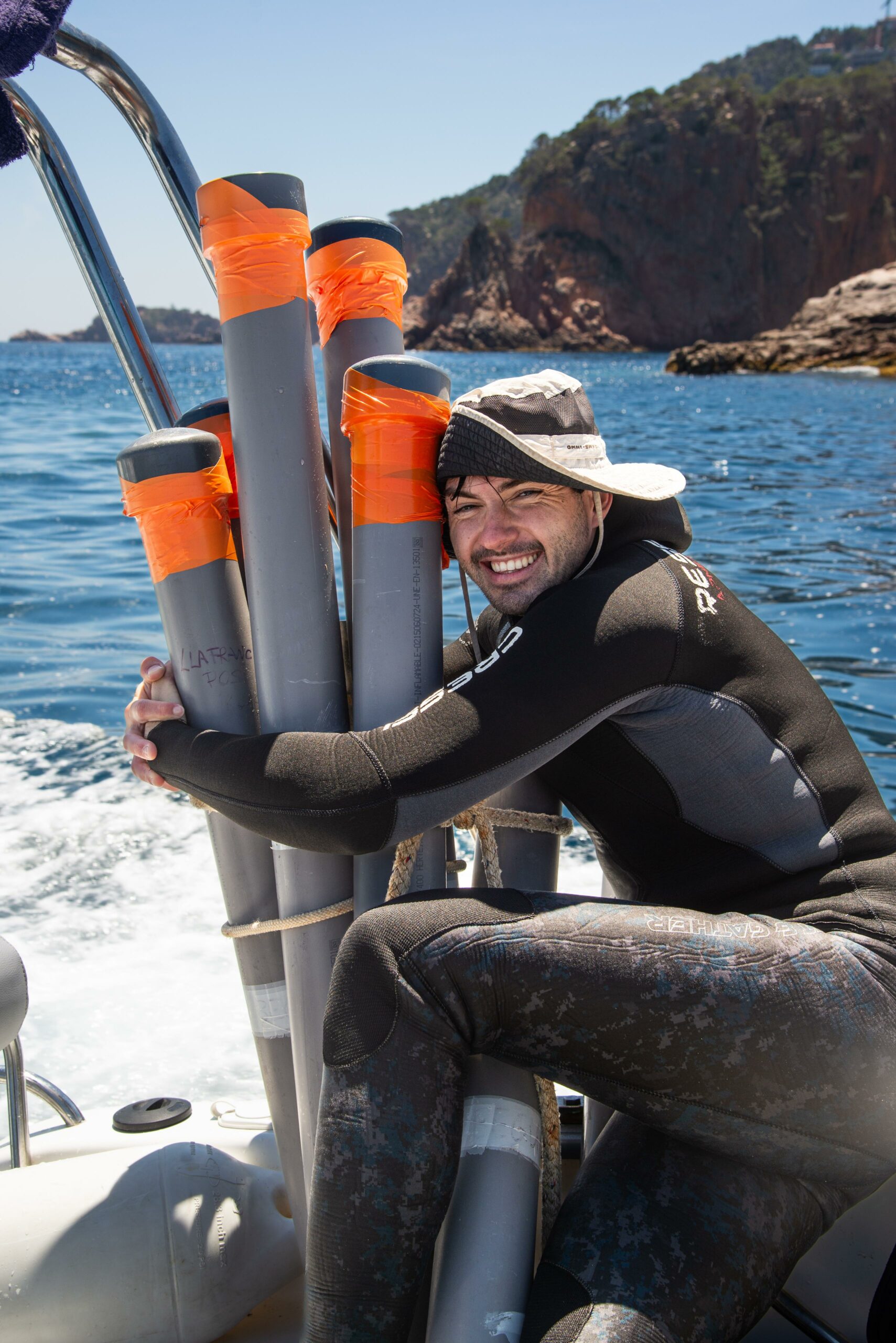 Actualmente cursa un doctorado industrial con Biosfera, CEAB-CSIC y la Universidad de Barcelona. Su investigación explora cómo la restauración contribuye al secuestro de carbono y cómo los escarpes de posidonia sirven como refugios para peces y puntos calientes de biodiversidad, a la vez que contribuye activamente a proyectos de restauración marina que promueven la conservación del carbono azul.
